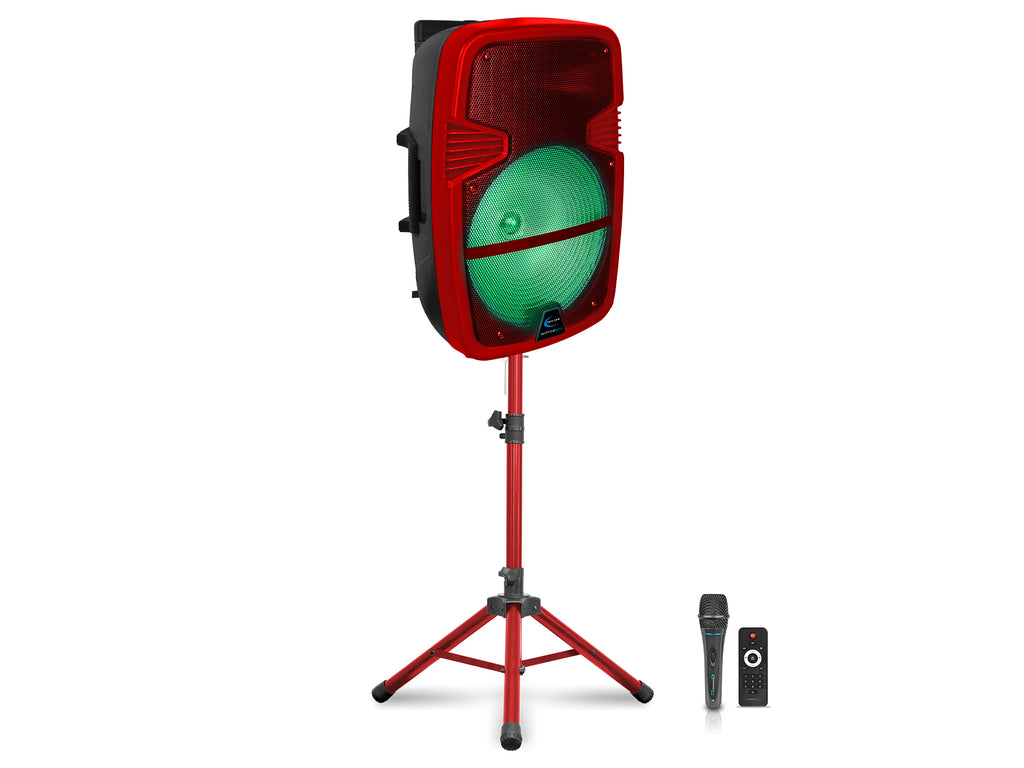 Red 15" Rechargeable Bluetooth LED Loudspeaker Package with Tripod & Microphone